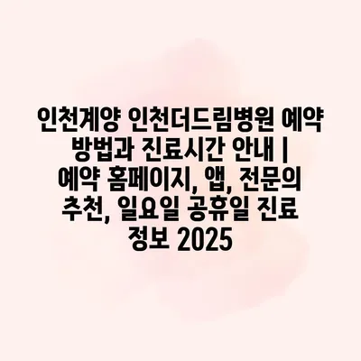 인천계양 인천더드림병원 예약 방법과 진료시간 공지 | 예약 홈페이지, 앱, 전연락 추천, 일요일 공휴일 진료 정보 2025 인천더드림병원은 다양한 전문 과목을 갖춘 종합병원으로, 환자들에게 편리한… 더 보기 »인천계양 인천더드림병원 예약 방법과 진료시간 안내 | 예약 홈페이지, 앱, 전문의 추천, 일요일 공휴일 진료 정보 2025