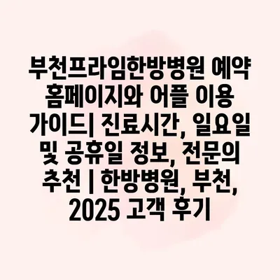부천프라임한방병원은 고객 여러분을 위해 보다 편리한 예약 시스템을 알려알려드리겠습니다. 예약은 홈페이지와 어플을 통해 쉽게 할 수 있으며, 원하는 시간에 진료를 신청할 수 있습니다. 진료시간은 평일… 더 보기 »부천프라임한방병원 예약 홈페이지와 어플 이용 가이드| 진료시간, 일요일 및 공휴일 정보, 전문의 추천 | 한방병원, 부천, 2025 고객 후기