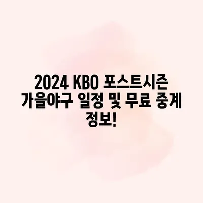 2024 KBO 포스트시즌 티켓예매 고화질 무료중계 일정 가을야구 와일드카드 준플레이오프 플레이오프 한국시리즈 2024 KBO 포스트시즌의 일정, 티켓 예매 방법 및 고화질 무료 중계에 대한 모든… 더 보기 »2024 KBO 포스트시즌 가을야구 일정 및 무료 중계 정보!