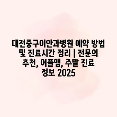 대전중구이안과병원 예약 방법 및 진료시간 정리 | 전연락 추천, 어플앱, 주말 진료 정보 2025에 대해 알아보겠습니다. 대전중구이안과병원은 전문적인 안과 진료를 제공하는 병원으로, 환자들의 편의를 위해… 더 보기 »대전중구이안과병원 예약 방법 및 진료시간 정리 | 전문의 추천, 어플앱, 주말 진료 정보 2025