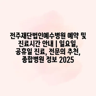 전주재단법인예수병원 예약 및 진료시간 공지 | 일요일, 공휴일 진료, 전연락 추천, 종합병원 정보 2025 전주재단법인예수병원은 환자 여러분의 편의를 위해 20xx년도에도 보다 나은 진료 서비스를 제공하고자… 더 보기 »전주재단법인예수병원 예약 및 진료시간 안내 | 일요일, 공휴일 진료, 전문의 추천, 종합병원 정보 2025
