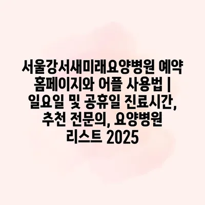 서울강서새미래요양병원 예약 홈페이지와 어플 사용법에 대해 알아보겠습니다. 우선, 홈페이지에 접속하면 간편한 예약 시스템을 통해 필요한 진료를 쉽게 신청할 수 있습니다. 어플을 다운로드하면 언제 어디서나 예약… 더 보기 »서울강서새미래요양병원 예약 홈페이지와 어플 사용법 | 일요일 및 공휴일 진료시간, 추천 전문의, 요양병원 리스트 2025