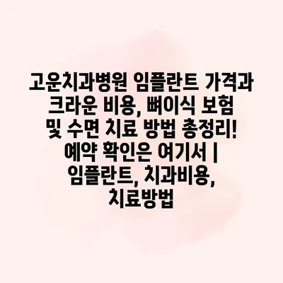 고운치과병원 임플란트 가격과 크라운 비용, 뼈이식 보험 및 수면 치료 방법 총정리! 예약 확인은 여기서 | 임플란트, 치과비용, 치료방법