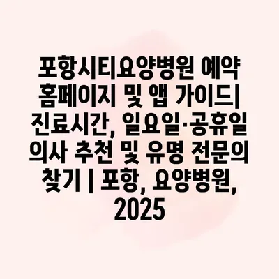 포항시티요양병원 예약 홈페이지 및 앱 설명서에서 보다 쉽게 진료예약을 할 수 있는 방법을 소개합니다. 홈페이지에 접속하면 진료시간과 의사들에 대한 내용을 쉽게 찾을 수 있습니다. 특히,… 더 보기 »포항시티요양병원 예약 홈페이지 및 앱 가이드| 진료시간, 일요일·공휴일 의사 추천 및 유명 전문의 찾기 | 포항, 요양병원, 2025