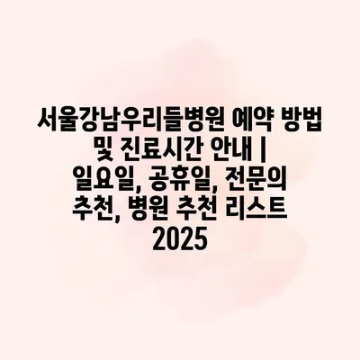 서울강남우리들병원 예약 방법 및 진료시간 공지 | 일요일, 공휴일, 전연락 추천, 병원 추천 리스트 2025에 대해 알아보겠습니다. 서울강남우리들병원은 다양한 진료과목을 갖춘 병원으로, 환자분들의 편의를 위해… 더 보기 »서울강남우리들병원 예약 방법 및 진료시간 안내 | 일요일, 공휴일, 전문의 추천, 병원 추천 리스트 2025