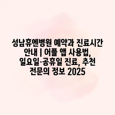 성남휴엔병원 예약과 진료시간 공지 | 어플 앱 사용법, 일요일·공휴일 진료, 추천 전연락 정보 2025에 대해 알아보겠습니다. 성남휴엔병원에서는 더욱 편리한 진료를 위해 어플리케이션을 제공하고 있습니다. 이… 더 보기 »성남휴엔병원 예약과 진료시간 안내 | 어플 앱 사용법, 일요일·공휴일 진료, 추천 전문의 정보 2025