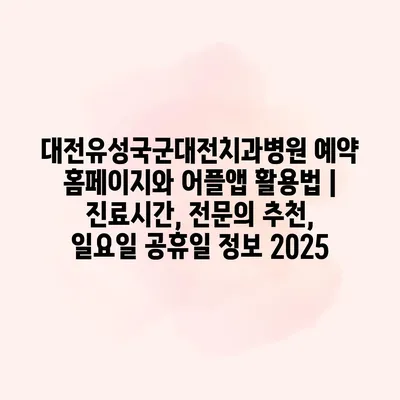 대전유성국군대전치과병원 예약 홈페이지와 어플앱 활용법 | 진료시간, 전연락 추천, 일요일 공휴일 정보 2025 대전유성국군대전치과병원의 예약 시스템은 매우 간편하며, 홈페이지와 어플을 통해 쉽게 이용할 수 있습니다.… 더 보기 »대전유성국군대전치과병원 예약 홈페이지와 어플앱 활용법 | 진료시간, 전문의 추천, 일요일 공휴일 정보 2025