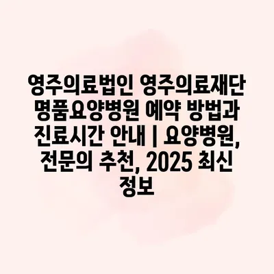 영주의료법인 영주의료재단 명품요양병원 예약 방법과 진료시간 공지에 대해 알려알려드리겠습니다. 우선, 예약은 전화 또는 온라인으로 할 수 있습니다. 전화 예약은 간편하며, 고객 센터에 연락하시면 친절하게 공지해… 더 보기 »영주의료법인 영주의료재단 명품요양병원 예약 방법과 진료시간 안내 | 요양병원, 전문의 추천, 2025 최신 정보