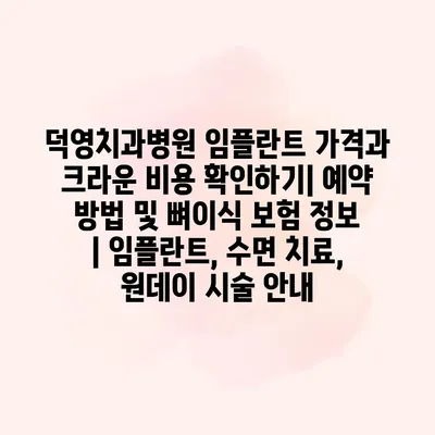 덕영치과병원 임플란트 가격과 크라운 비용 확인하기에 대한 정보가 필요하신가요? 임플란트 시술은 개별적인 상황에 따라 달라지므로, 정확한 비용은 상담 후 공지받으실 수 있습니다. 또한, 크라운의 경우에도… 더 보기 »덕영치과병원 임플란트 가격과 크라운 비용 확인하기| 예약 방법 및 뼈이식 보험 정보 | 임플란트, 수면 치료, 원데이 시술 안내