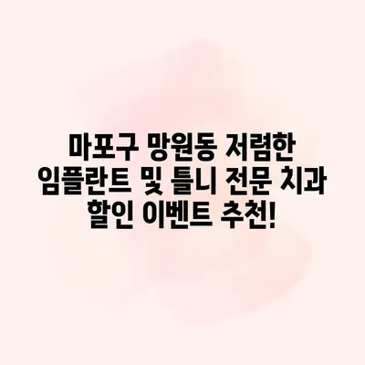 마포구 망원동 임플란트 가격 싼 곳 틀니 잘하는 치과 추천 할인 이벤트 마포구 망원동에서 임플란트 가격이 저렴한 곳과 틀니를 잘하는 치과를 추천합니다. 다양한 할인 이벤트와… 더 보기 »마포구 망원동 저렴한 임플란트 및 틀니 전문 치과 할인 이벤트 추천!