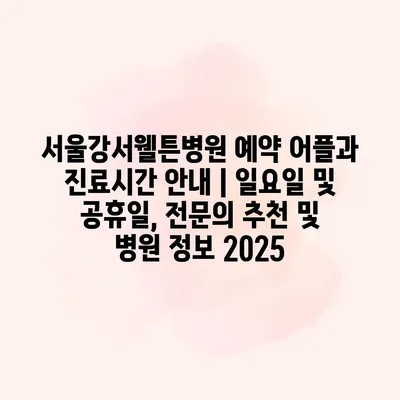 서울강서웰튼병원 예약 어플과 진료시간 공지 | 일요일 및 공휴일, 전연락 추천 및 병원 정보 2025에 대해 알아보겠습니다. 서울강서웰튼병원은 환자분들의 편의를 위해 예약 어플을 운영하고 있습니다.… 더 보기 »서울강서웰튼병원 예약 어플과 진료시간 안내 | 일요일 및 공휴일, 전문의 추천 및 병원 정보 2025