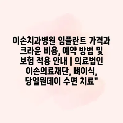 이손치과병원 임플란트 가격과 크라운 비용, 예약 방법 및 보험 적용 공지 | 의료법인 이손의료재단, 뼈이식, 당일원데이 수면 치료 이손치과병원에서는 임플란트와 크라운 서비스의 합리적인 가격을 알려알려드리겠습니다.… 더 보기 »이손치과병원 임플란트 가격과 크라운 비용, 예약 방법 및 보험 적용 안내 | 의료법인 이손의료재단, 뼈이식, 당일원데이 수면 치료”