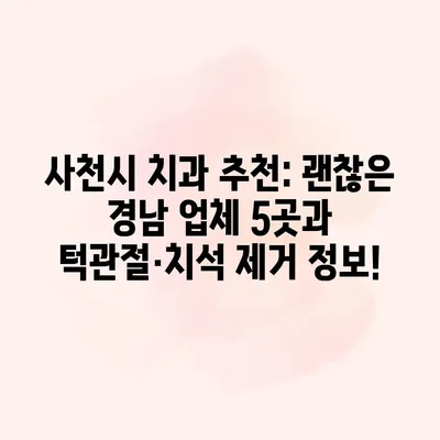 사천시 치과 괜찮은 경남 업체 추천 5가지 치석제거 턱관절 사천시의 괜찮은 치과 5곳과 치석제거, 턱관절 관련 정보 제공. 경남 지역의 치과 선택에 도움이 되는 상세… 더 보기 »사천시 치과 추천: 괜찮은 경남 업체 5곳과 턱관절·치석 제거 정보!
