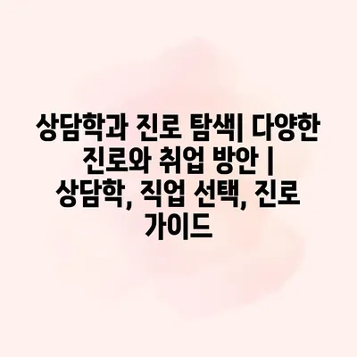 상담학과 진로 탐색은 많은 학생들에게 중요한 과정입니다. 상담학을 전공하며 다양한 진로를 고민한다면, 무엇보다 자신의 관심과 강점을 파악하는 것이 필수적입니다. 상담학 전공자들은 주로 학교 상담사, 심리… 더 보기 »상담학과 진로 탐색| 다양한 진로와 취업 방안 | 상담학, 직업 선택, 진로 가이드