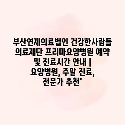 부산연제의료법인 건강한사람들 의료재단 프리마요양병원에서는 예약 및 진료시간에 관한 내용을 알려알려드리겠습니다. 우리 요양병원은 주말 진료도 가능하여, 바쁜 일상 속에서도 편리하게 방문하실 수 있습니다. 전문가들이 상주하는 프리마요양병원에서는… 더 보기 »부산연제의료법인 건강한사람들 의료재단 프리마요양병원 예약 및 진료시간 안내 | 요양병원, 주말 진료, 전문가 추천’