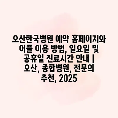 오산한국병원 예약 홈페이지와 어플 이용 방법, 일요일 및 공휴일 진료시간 공지 | 오산, 종합병원, 전연락 추천, 2025 오산한국병원은 저희 지역 사회에서 꼭 필요한 종합병원으로, 다양한… 더 보기 »오산한국병원 예약 홈페이지와 어플 이용 방법, 일요일 및 공휴일 진료시간 안내 | 오산, 종합병원, 전문의 추천, 2025