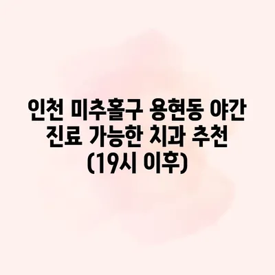 인천 미추홀구 용현동 치과 야간진료 병원 추천 19시 이후 진료 가능 인천 미추홀구 용현동에서 밤 늦게 치과를 방문해야 하는 경우, 치과 야간진료 병원 추천 19시… 더 보기 »인천 미추홀구 용현동 야간 진료 가능한 치과 추천 (19시 이후)