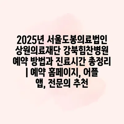 2025년 서울도봉의료법인 상원의료재단 강북힘찬병원의 예약 방법과 진료시간을 총정리해 제공합니다. 예약은 홈페이지와 어플 앱을 통해 간편하게 할 수 있습니다. 홈페이지에 접속하시고, 회원가입 후 원하는 진료과목과 일정을… 더 보기 »2025년 서울도봉의료법인 상원의료재단 강북힘찬병원 예약 방법과 진료시간 총정리 | 예약 홈페이지, 어플 앱, 전문의 추천