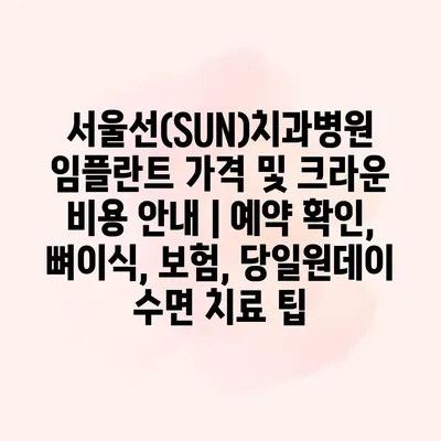 서울선(SUN)치과병원 임플란트 가격 및 크라운 비용 공지에 대해 알아보겠습니다. 서울선 치과병원에서는 임플란트와 크라운의 가격이 환자의 상태와 필요한 시술에 따라 상이하므로, 정확한 상담이 필요합니다. 예약 확인은… 더 보기 »서울선(SUN)치과병원 임플란트 가격 및 크라운 비용 안내 | 예약 확인, 뼈이식, 보험, 당일원데이 수면 치료 팁