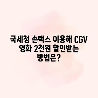 국세청 손택스 세금포인트 CGV 영화 2천원 할인 받는방법 국세청의 손택스 세금포인트를 활용하여 CGV에서 영화 관람 시 할인받는 방법을 소개합니다. 이 제도는 납세자가 성실히 세금을 납부한… 더 보기 »국세청 손택스 이용해 CGV 영화 2천원 할인받는 방법은?