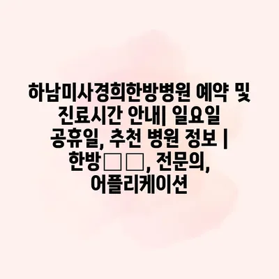 하남미사경희한방병원에서의 예약 및 진료시간 공지를 알려알려드리겠습니다. 병원은 월요일부터 토요일까지 운영되며, 일요일과 공휴일은 휴무입니다. 진료 시간은 평일 오전 9시부터 오후 6시까지이며, 점심시간은 오후 12시부터 1시까지입니다. 오전… 더 보기 »하남미사경희한방병원 예약 및 진료시간 안내| 일요일 공휴일, 추천 병원 정보 | 한방医院, 전문의, 어플리케이션