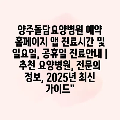 양주돌담요양병원 예약 홈페이지 앱 진료시간 및 일요일, 공휴일 진료공지 | 추천 요양병원, 전연락 정보, 2025년 최신 설명서에 대해 공지제공합니다. 양주돌담요양병원은 환자 중심의 진료를 제공하며, 편리한… 더 보기 »양주돌담요양병원 예약 홈페이지 앱 진료시간 및 일요일, 공휴일 진료안내 | 추천 요양병원, 전문의 정보, 2025년 최신 가이드”