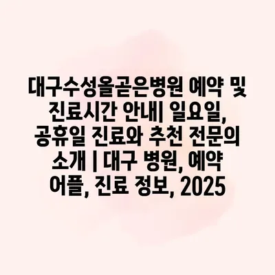 대구수성올곧은병원은 예약 및 진료시간 공지를 통해 보다 편리한 진료 경험을 알려알려드리겠습니다. 주말 및 공휴일에도 진료를 진행하며, 이로 인해 많은 환자들이 필요할 때 방문할 수 있는… 더 보기 »대구수성올곧은병원 예약 및 진료시간 안내| 일요일, 공휴일 진료와 추천 전문의 소개 | 대구 병원, 예약 어플, 진료 정보, 2025