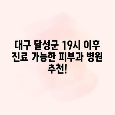 대구 달성군 피부과 야간진료 병원 추천 19시 이후 진료 가능 대구 달성군에서 19시 이후에 야간진료를 받을 수 있는 피부과에 대한 정보를 제공하여, 늦은 시간에 진료를… 더 보기 »대구 달성군 19시 이후 진료 가능한 피부과 병원 추천!