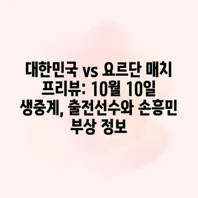 대한민국 vs 요르단 매치 프리뷰 10월 10일 암만국제경기장 생중계 무료중계 출전선수 손흥민 부상 2026 북중미월드컵 경기일정 이번 10월 10일, 암만 국제 경기장에서 대한민국과 요르단의 대결이… 더 보기 »대한민국 vs 요르단 매치 프리뷰: 10월 10일 생중계, 출전선수와 손흥민 부상 정보
