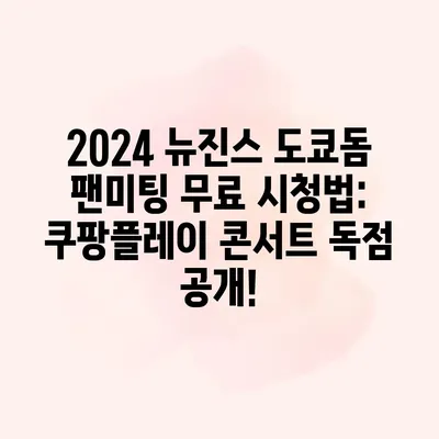 2024 뉴진스 도쿄돔 팬미팅 공연 쿠팡플레이 콘서트 독점 공개 무료시청 쿠팡와우 2024 뉴진스 도쿄돔 팬미팅 공연이 드디어 공개됩니다. 이번 팬미팅 Bunnies Camp 2024 Tokyo Dome은… 더 보기 »2024 뉴진스 도쿄돔 팬미팅 무료 시청법: 쿠팡플레이 콘서트 독점 공개!
