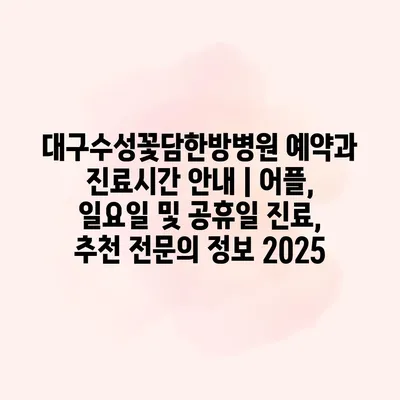 대구수성꽃담한방병원 예약과 진료시간 안내 | 어플, 일요일 및 공휴일 진료, 추천 전문의 정보 2025