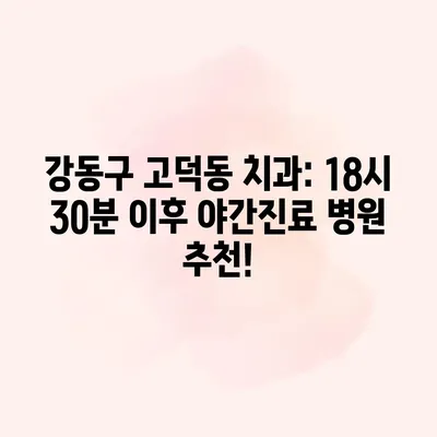 강동구 고덕동 치과 야간진료 병원 추천 18시 30분 이후 진료 가능 강동구 고덕동 치과 야간진료의 필요성 강동구 고덕동에서 치과 진료는 단순한 치료만이 아니라, 야간에도 필요할… 더 보기 »강동구 고덕동 치과: 18시 30분 이후 야간진료 병원 추천!