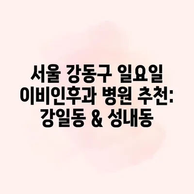 서울 강동구 일요일 이비인후과 진료 병원 추천 강일동 성내동 서울 강동구에서 일요일에 이비인후과 진료를 받을 수 있는 병원을 찾는 것은 의외로 단순하지 않습니다. 특히 평일에… 더 보기 »서울 강동구 일요일 이비인후과 병원 추천: 강일동 & 성내동