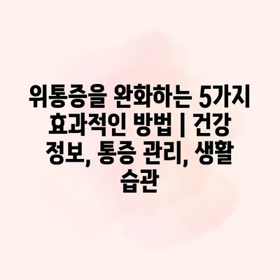 위통증은 많은 사람들이 겪는 불편한 증상으로, 일상생활에 지장을 줄 수 있습니다. 그래서 오늘은 위통증을 완화하는 5가지 효과적인 방법에 대해 소개하고자 합니다. 첫 번째로, 소화에 좋은… 더 보기 »위통증을 완화하는 5가지 효과적인 방법 | 건강 정보, 통증 관리, 생활 습관