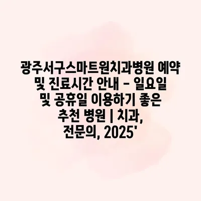 광주서구스마트원치과병원 예약 및 진료시간 공지 – 일요일 및 공휴일 이용하기 좋은 추천 병원 | 치과, 전연락, 2025 일상에서의 치아 건강은 매우 중요합니다. 광주서구스마트원치과병원은 주말과 공휴일에도… 더 보기 »광주서구스마트원치과병원 예약 및 진료시간 안내 – 일요일 및 공휴일 이용하기 좋은 추천 병원 | 치과, 전문의, 2025′