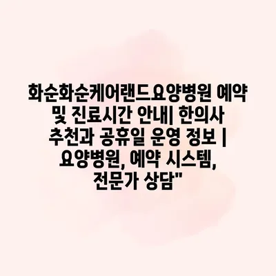 화순화순케어랜드요양병원 예약 및 진료시간 공지에 대해 알려제공합니다. 저희 병원은 환자 중심의 서비스를 제공하기 위해 체계적인 예약 시스템을 운영합니다. 이 시스템을 통해 더욱 편리하고 신속하게 진료를… 더 보기 »화순화순케어랜드요양병원 예약 및 진료시간 안내| 한의사 추천과 공휴일 운영 정보 | 요양병원, 예약 시스템, 전문가 상담”