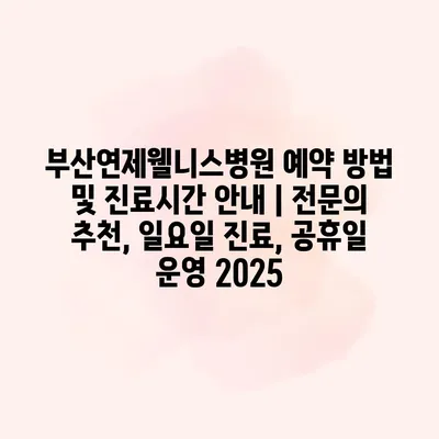 부산연제웰니스병원 예약 방법 및 진료시간 공지 | 전연락 추천, 일요일 진료, 공휴일 운영 2025 부산연제웰니스병원은 환자분들이 쉽게 방문할 수 있도록 다양한 예약 방법을 제공하고 있습니다.… 더 보기 »부산연제웰니스병원 예약 방법 및 진료시간 안내 | 전문의 추천, 일요일 진료, 공휴일 운영 2025