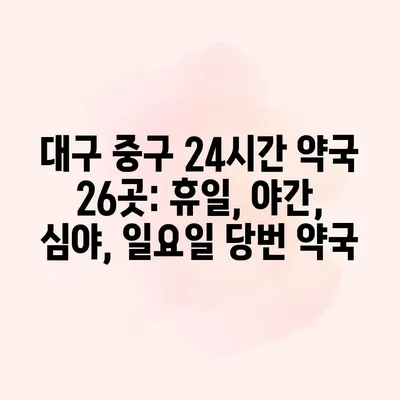 대구 중구 24시간 약국 찾기 휴일 야간 심야 일요일 당번약국 26곳 대구 중구에서 24시간 운영하는 약국을 찾는 것은 매우 중요한 일입니다. 특히 심야 시간이나 주말,… 더 보기 »대구 중구 24시간 약국 26곳: 휴일, 야간, 심야, 일요일 당번 약국