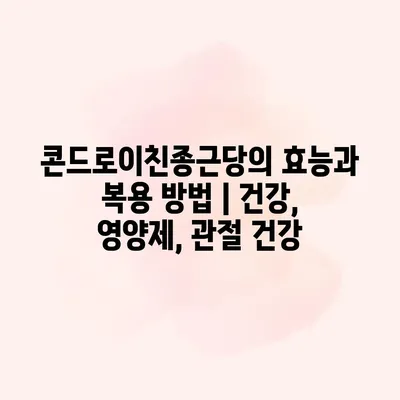 콘드로이친종근당은 관절 건강에 도움을 줄 수 있는 영양제로 알려져 있습니다. 이 제품은 관절의 연골을 보호하고, 관절 통증을 완화하는 데 도움을 줄 수 있습니다. 특히, 노화로… 더 보기 »콘드로이친종근당의 효능과 복용 방법 | 건강, 영양제, 관절 건강