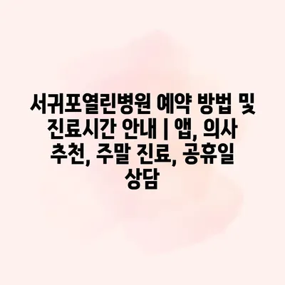 서귀포열린병원 예약 방법 및 진료시간 공지서귀포열린병원은 의사와의 상담을 간편하게 진행할 수 있도록 온라인 예약 시스템을 운영하고 있습니다. 예약은 병원 공식 앱을 통해 가능하며, 원하는 날짜와… 더 보기 »서귀포열린병원 예약 방법 및 진료시간 안내 | 앱, 의사 추천, 주말 진료, 공휴일 상담