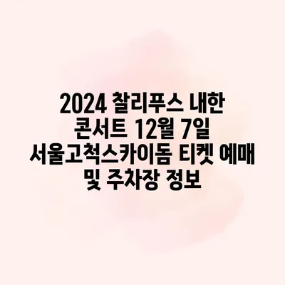2024 찰리푸스 내한 콘서트 12월 7일 티켓예매 가격 서울고척스카이돔 공연 주차장 취소표 2024년, 많은 팬들이 기다려온 찰리푸스 내한 콘서트가 드디어 확정되었어요. 1년 만에 한국을 다시… 더 보기 »2024 찰리푸스 내한 콘서트 12월 7일 서울고척스카이돔 티켓 예매 및 주차장 정보