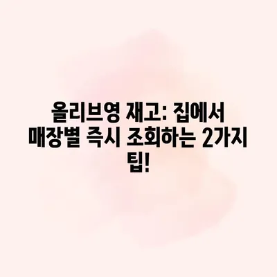 올리브영 재고: 집에서 매장별 즉시 조회하는 2가지 팁!