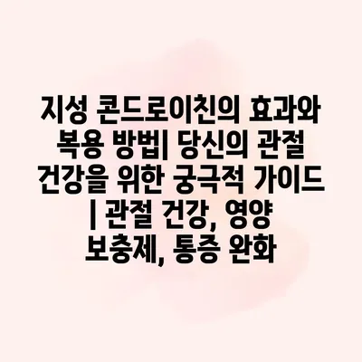 지성 콘드로이친은 관절 건강을 유지하고 통증을 완화하는 데 도움을 주는 영양 보충제입니다. 주로 관절 연골의 구조와 기능을 지원하여 활동적인 삶을 유지할 수 있도록 도와줍니다. 이… 더 보기 »지성 콘드로이친의 효과와 복용 방법| 당신의 관절 건강을 위한 궁극적 가이드 | 관절 건강, 영양 보충제, 통증 완화