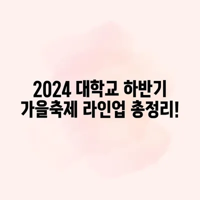 2024 대학교 가을축제 하반기 라인업 모음집 2024 대학교 가을축제 하반기 라인업 모음집을 통해 다양한 대학의 축제 정보를 소개하고, 참여할 뮤지션 라인업을 확인하세요. 2024 대학교 가을축제… 더 보기 »2024 대학교 하반기 가을축제 라인업 총정리!