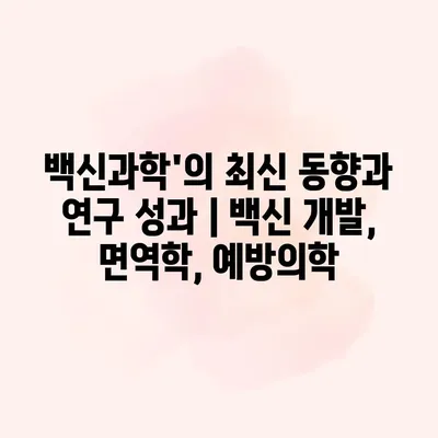 백신과학’의 최신 동향과 연구 성과 | 백신 개발, 면역학, 예방의학