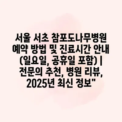 서울 서초 참포도나무병원 예약 방법 및 진료시간 공지 (일요일, 공휴일 포함) | 전연락 추천, 병원 리뷰, 2025년 최신 정보 참포도나무병원은 다양한 진료과목을 갖춘 전문 의료기관으로,… 더 보기 »서울 서초 참포도나무병원 예약 방법 및 진료시간 안내 (일요일, 공휴일 포함) | 전문의 추천, 병원 리뷰, 2025년 최신 정보”