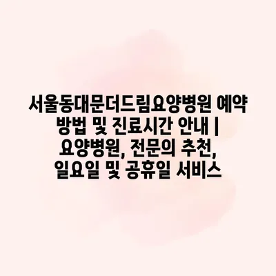 서울동대문더드림요양병원 예약 방법 및 진료시간 안내 | 요양병원, 전문의 추천, 일요일 및 공휴일 서비스