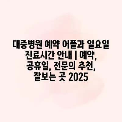 대중병원 예약 어플과 일요일 진료시간 공지 | 예약, 공휴일, 전연락 추천, 잘보는 곳 2025 현대인의 바쁜 삶 속에서 병원 방문은 종종 큰 부담이 됩니다. 이러한… 더 보기 »대중병원 예약 어플과 일요일 진료시간 안내 | 예약, 공휴일, 전문의 추천, 잘보는 곳 2025