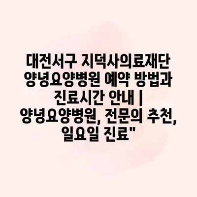 대전서구 지덕사의료재단 양녕요양병원은 환자 맞춤형 진료와 전문 의료 서비스로 많은 사랑을 받고 있습니다. 양녕요양병원의 예약 방법은 간단합니다. 병원 홈페이지에 접속해 온라인 예약 서비스를 이용하거나, 전화로… 더 보기 »대전서구 지덕사의료재단 양녕요양병원 예약 방법과 진료시간 안내 | 양녕요양병원, 전문의 추천, 일요일 진료”