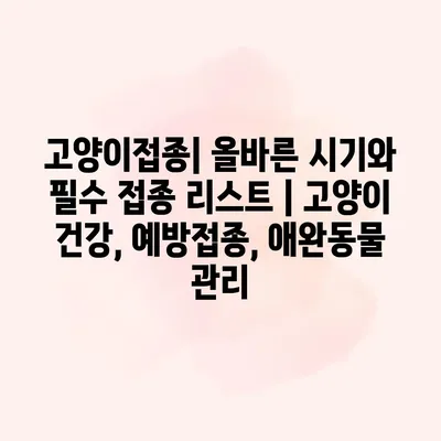고양이접종은 고양이의 건강을 지키기 위한 필수적인 과정입니다. 올바른 접종 시기를 알면 질병 예방에 큰 도움이 됩니다. 대부분의 고양이는 태어날 때부터 몇 가지 기본 예방접종을 받지만,… 더 보기 »고양이접종| 올바른 시기와 필수 접종 리스트 | 고양이 건강, 예방접종, 애완동물 관리